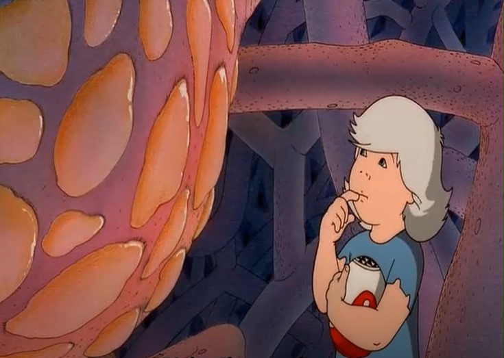 The Masters of Time’s plot certainly arouses interest as we follow Piel, a little orphaned boy, who starts exploring one strange planet all on his own. Piel represents the vulnerability and innocence at the centre of one potentially dangerous environment, and time is running out for Jaffar and Belle to save Piel’s life as planet Perdide is home to some potentially dangerous creatures, including hornets. Seeing it in this light, The Masters of Time may remind of another animation – Soviet The Mystery of the Third Planet (1981), which, incidentally also has one inquisitive young child at its plot centre – girl Alice, who is being cared for by two adults (but no mother in sight) while on an inter-planetary journey. And, as its Soviet counterpart, The Masters of Time’s intense story often gives way to much humour, in this case largely provided by two alien telepathic “gnomes” named Yula and Jad in the story. These two are lovable little creatures who are always trying to figure out humans around them, but not always successfully. They do have access to their thoughts, but they also often have trouble making sense of this “secret” information they receive.